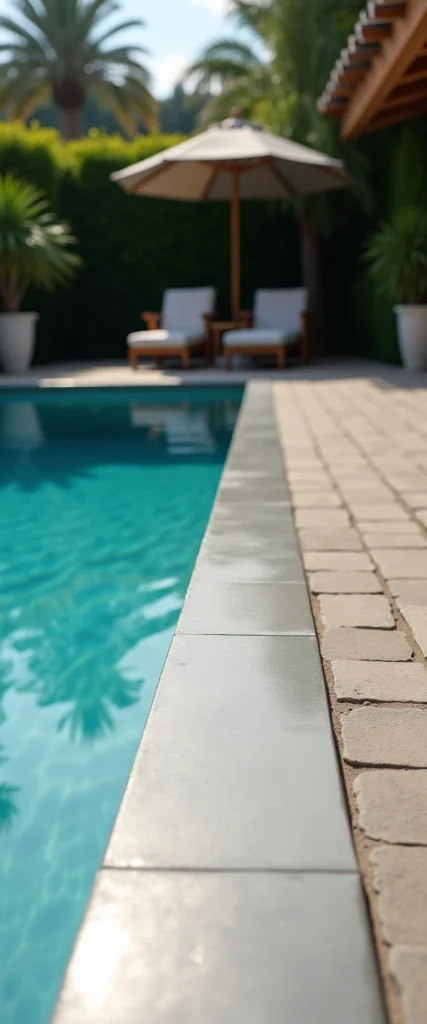 - Margelles : choisir des margelles adhérentes avec un profil arrondi pour une meilleure prise en main et plus de sécurité. Différentes options de matériaux (pierre naturelle, béton, bois composite).